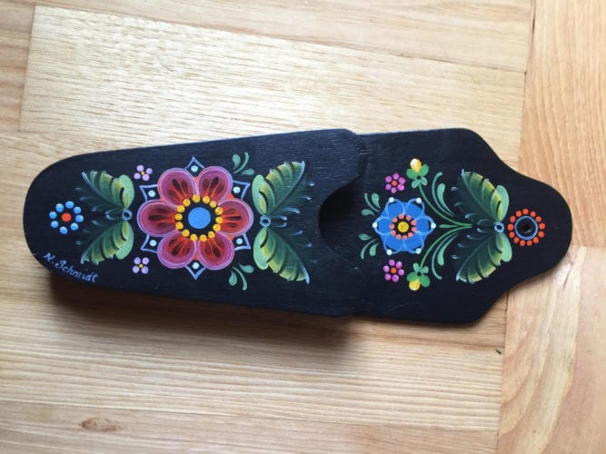 On Saturday April 8 there are two beginner classes. From 9-noon Schmidt will teach how to paint a scissors holder and from 1-4 in the afternoon she’ll teach painting on a small round-topped box.