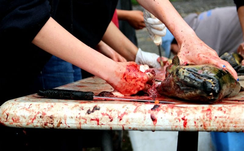 “So you gotta go like this and get the guts out like that and that use that to hold it up. And then cut from right here,” said Zoe James.