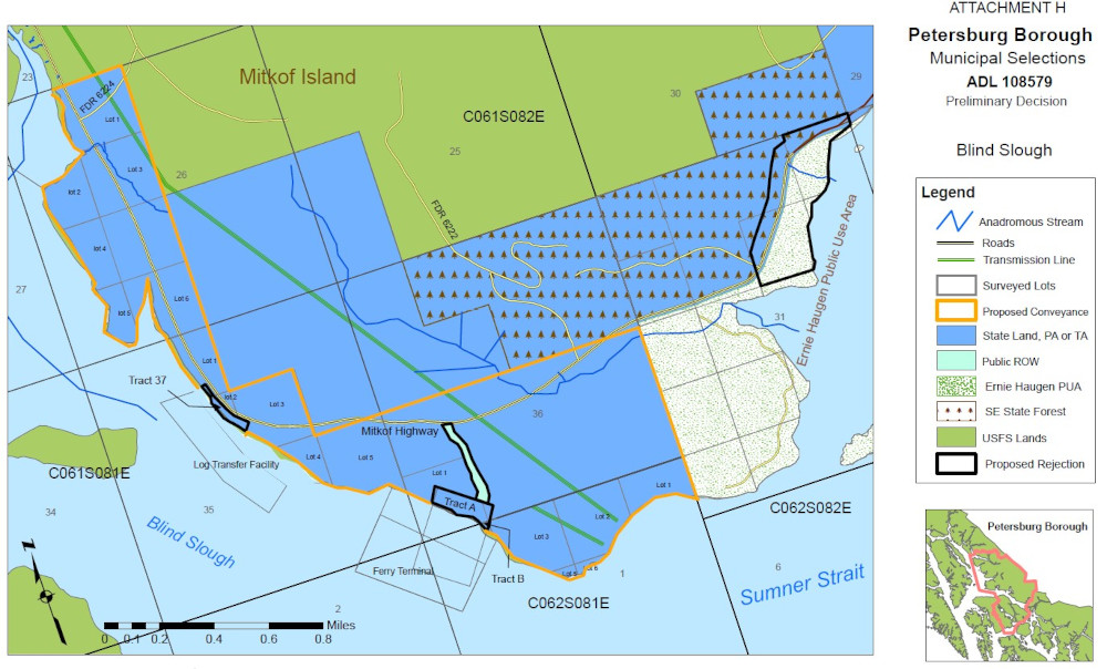 The 2017 legislation increased Petersburg’s share of state property so this decision just covers about 10 percent of that. The total entitlement is 14,666 acres. The state had already granted 458 acres to the former city government, leaving 14,208 acres still to transfer. Two more preliminary decisions are expected out sometime on additional acreage.