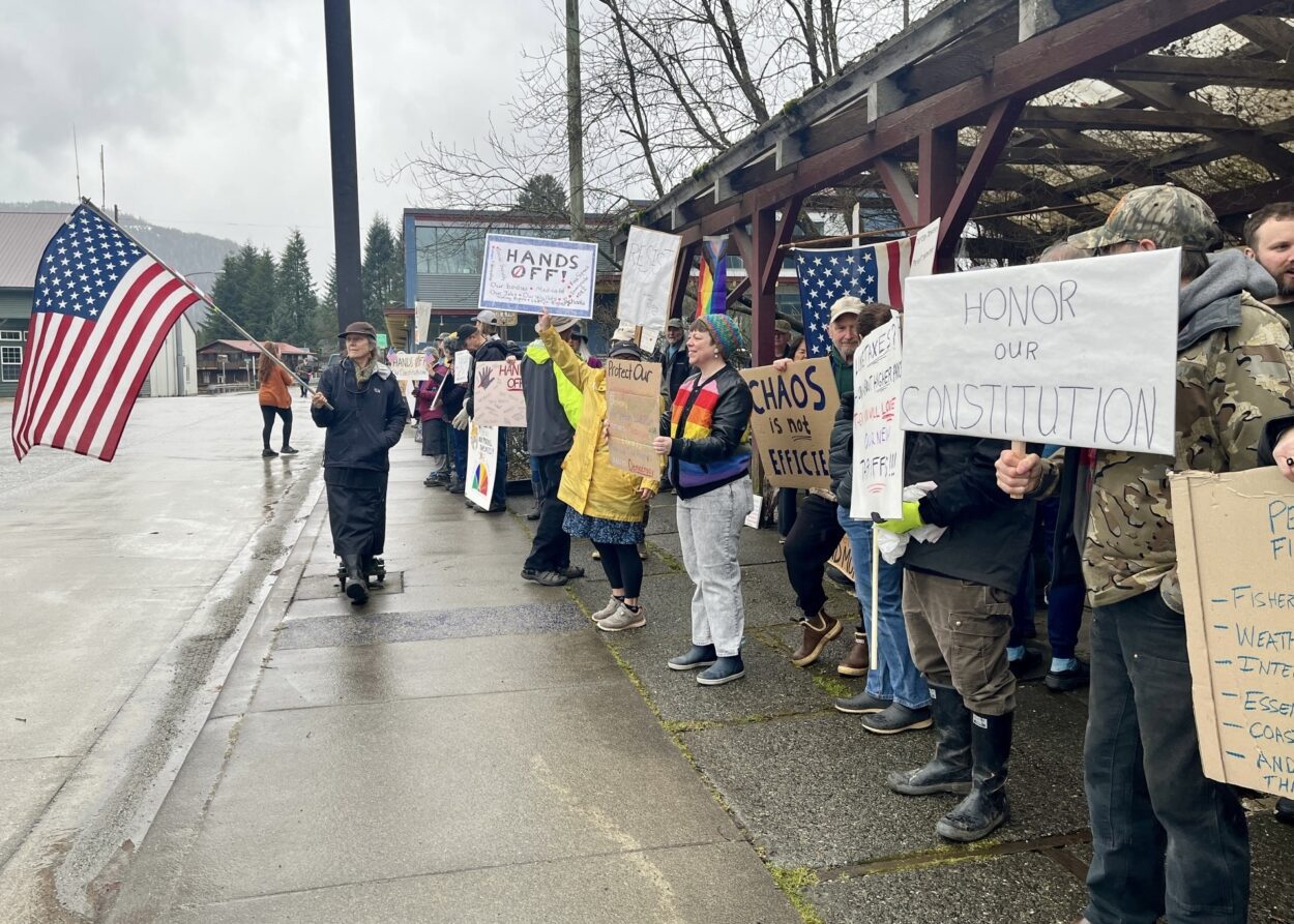 Dozens of signs called for “Hands Off!” of healthcare, education, science, and sought protections for free speech and human rights. Similar “Hands Off!” rallies to oppose actions by the Trump Administration were held throughout Alaska and across the country.