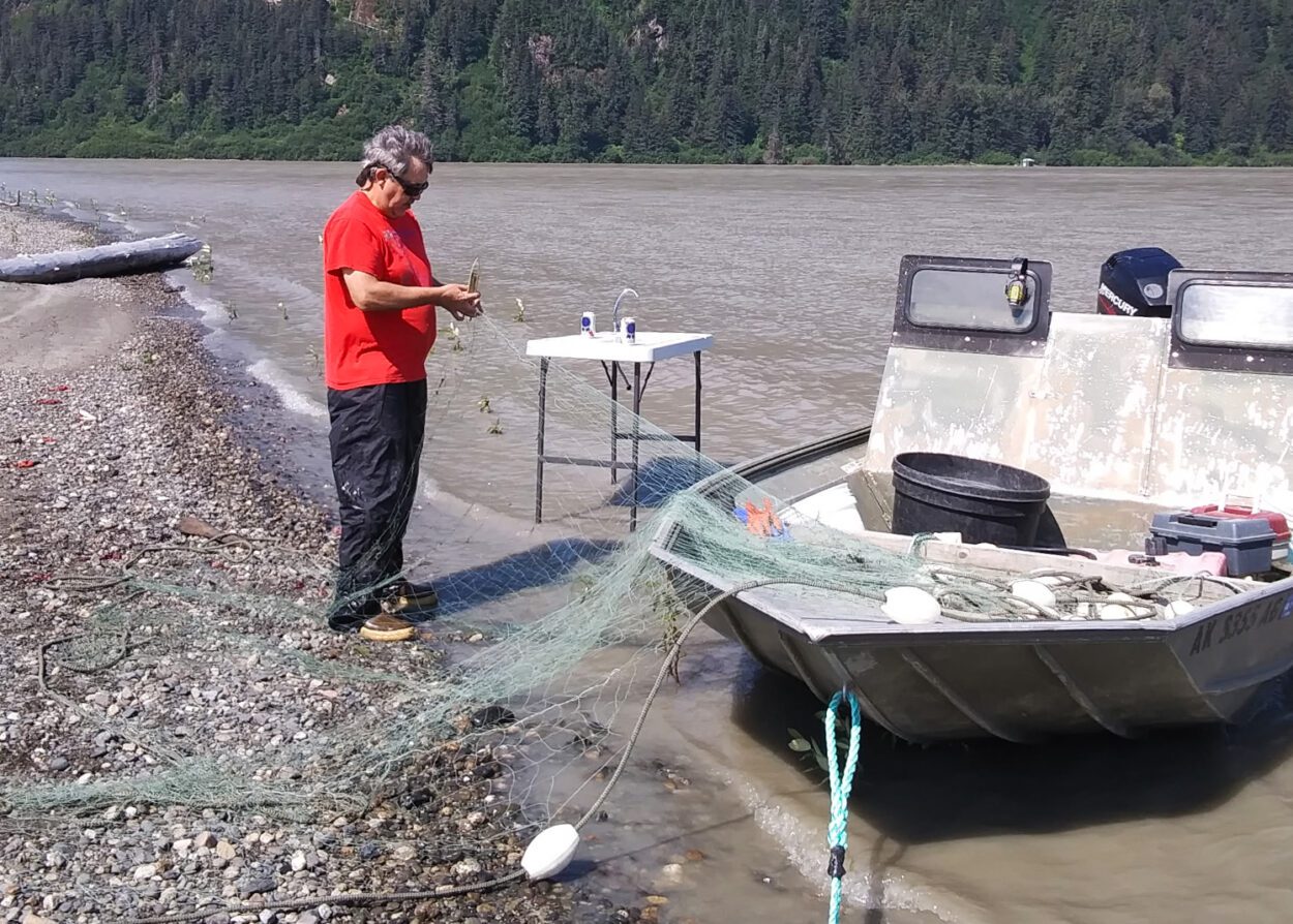 Hasbrouck drove his boat upriver for about an hour until he got to a cabin. He set his net at noon, then checked it in the evening. He had 16 sockeye. When he checked back the next morning, he had 26.