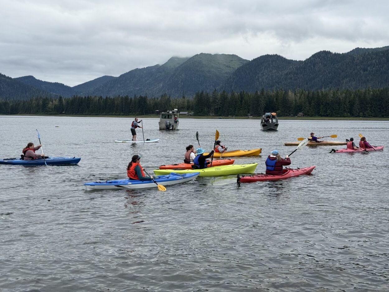Before Libby and the rest of the pedalers set out that morning, the paddlers got a head start, launching from Scow Bay into the Wrangell Narrows. Participants on land and water all made their way to the other side of town, finishing their journeys at Sandy Beach.