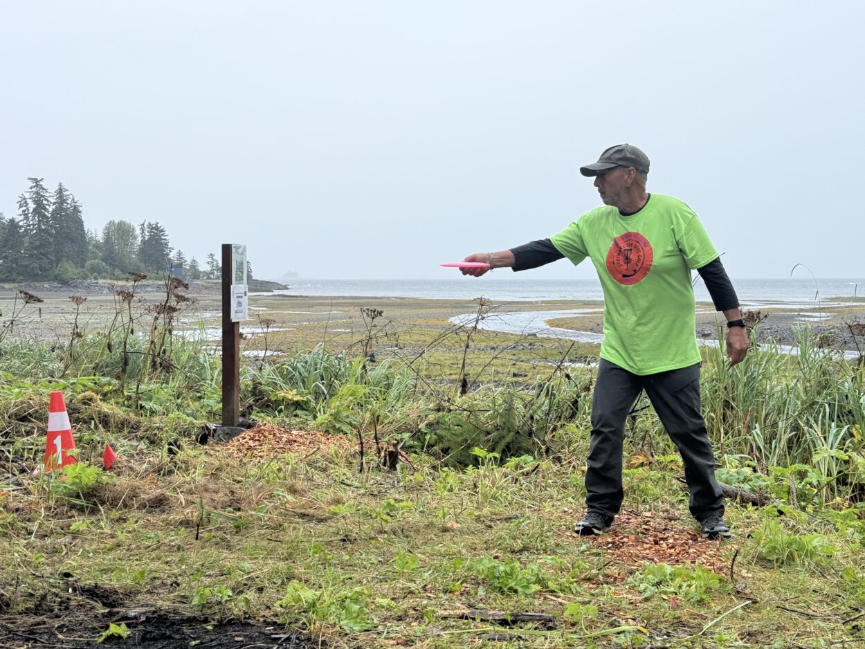 The tournament, called The Sodgrass Fling, was part of the annual Arts in the Cove: A Festival by the Sea. It got its name from one of the course’s builders, Gary Soderberg. He said he started playing disc golf about four years ago, traveling to the course in Craig, previously the only other course on Prince of Wales Island.