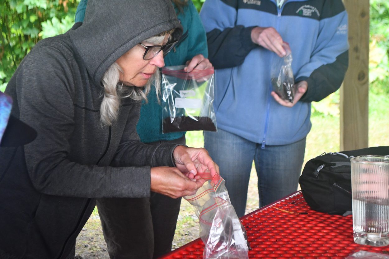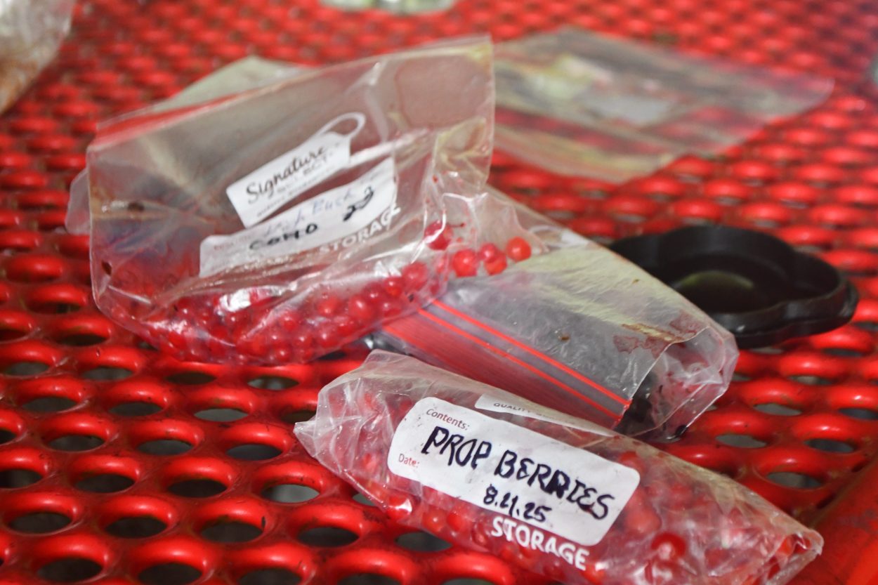 Mork added dirt to a bag, and wetted it enough that it began to clump together. She added the seeds from the blender. Later, she’ll place the seeds in the fridge until it’s time to plant. While that timeline varies from berry to berry, often that means waiting until spring.