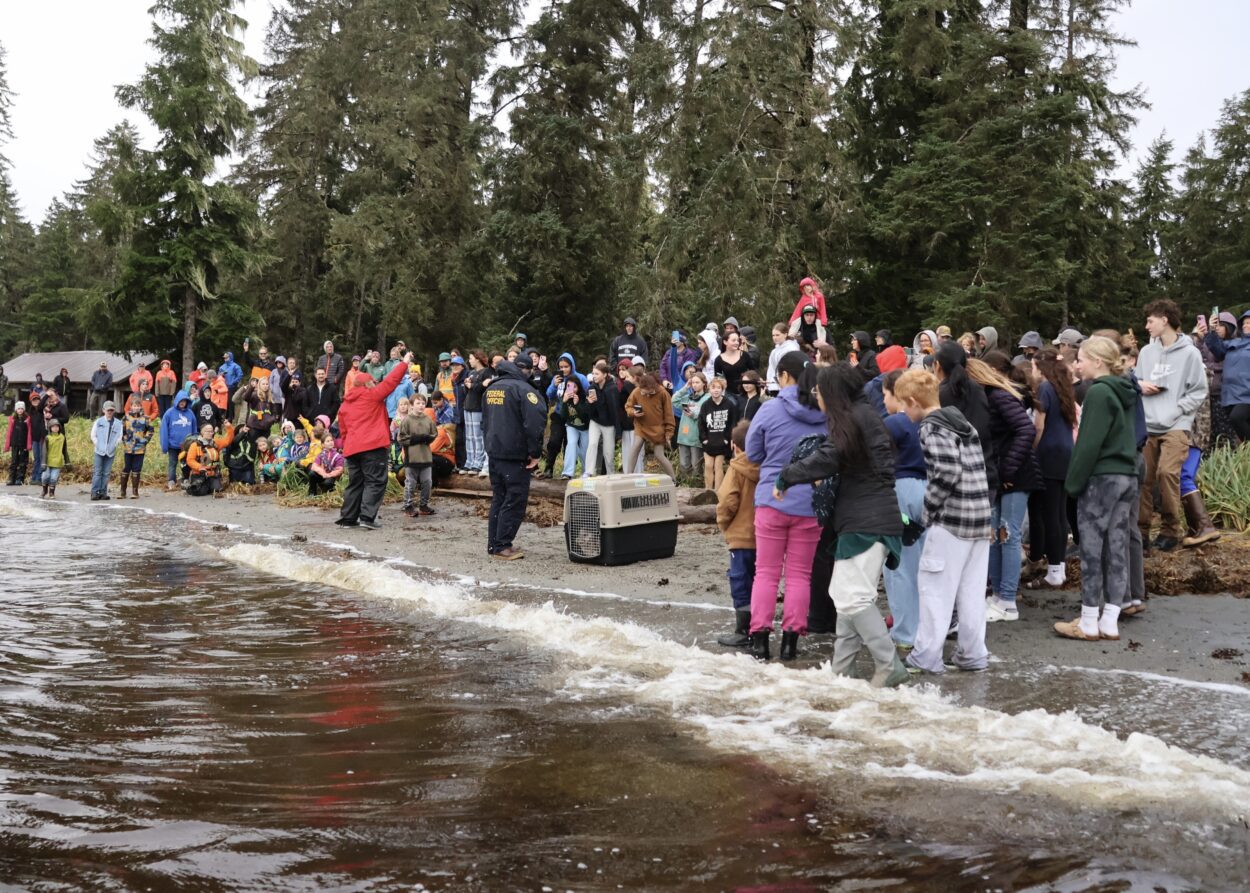 Among the gathering at Sandy Beach, Jonas Banta was waiting for the seal’s arrival. Banta had already gotten a sneak peek of Bravo because he flew in on the same jet. Banta came to Petersburg to go deer hunting, but when he heard about the seal’s release, he came to check it out.
