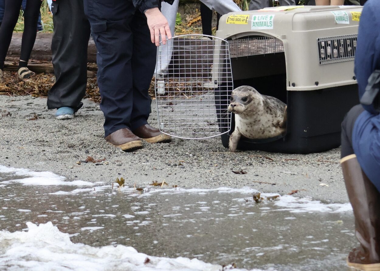 “We love watching the seals when they’re here,” Kinder Skog co-founder Katie Holmlund said. “So it’s really exciting to get to see one released back into the wild.”