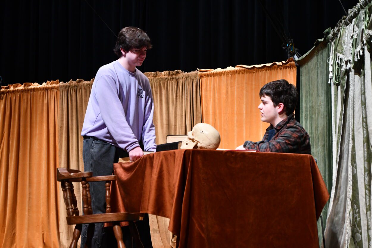 At a recent evening rehearsal at the Wright Auditorium, the stage was set for a student production of Dracula. The props were simple: a table in one corner, a bench in the other, and curtains lining the walls of the stage.