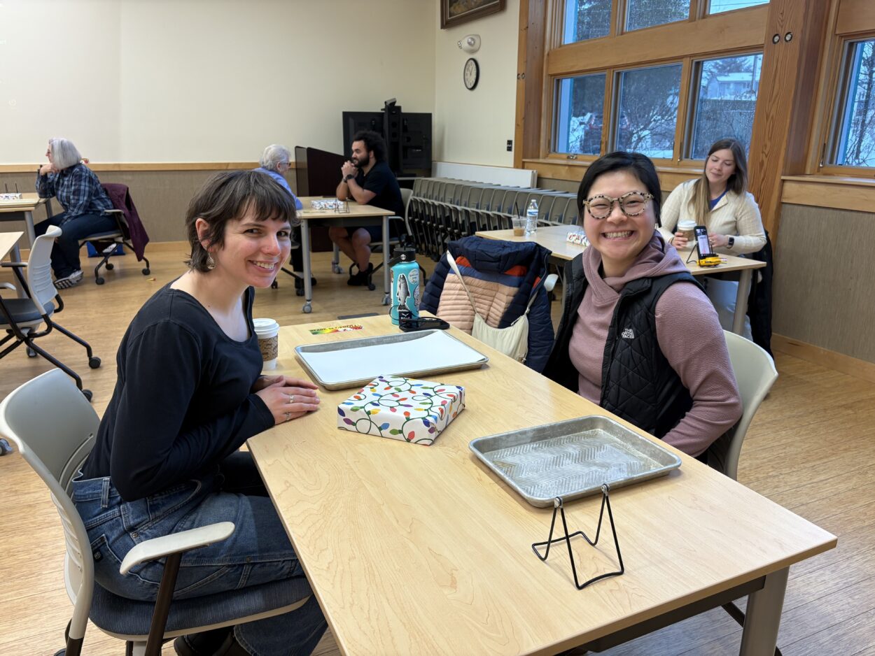 The puzzlers found their way to tables spaced out across the library’s conference room, each with the same puzzle on top. The puzzles were wrapped in wrapping paper, so nobody could peek ahead of time.