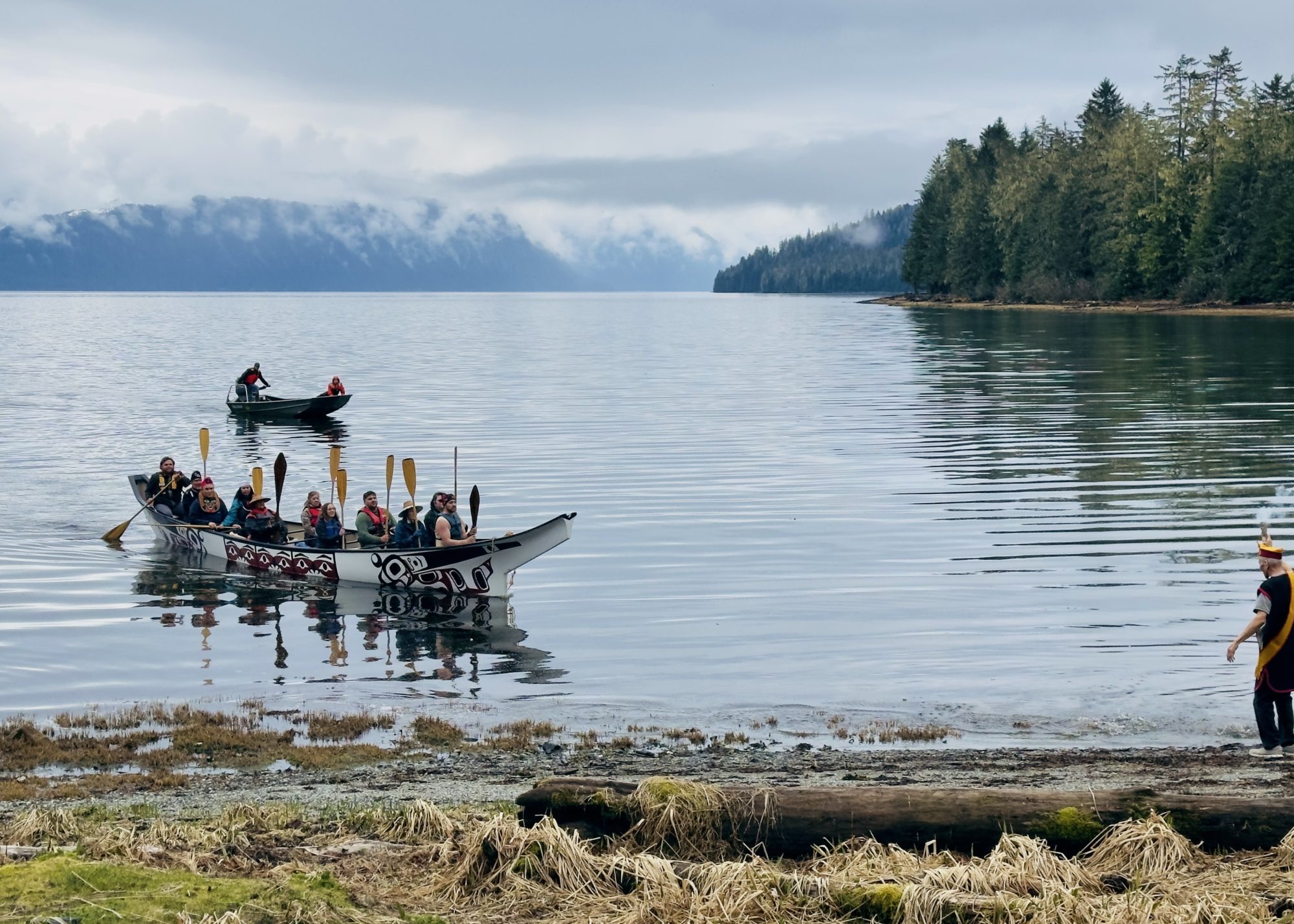 Ságooch Billy Ware was a puller at the front of the canoe. He said it gave him goosebumps, turning the corner from Frederick Sound and seeing the large gathering waiting on the beach.